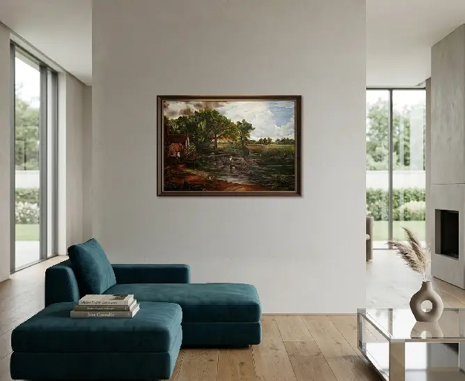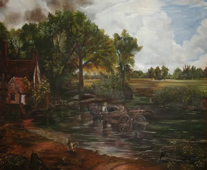 A landscape oil painting inspired by the classic countryside scenes of renowned artist John Constable.