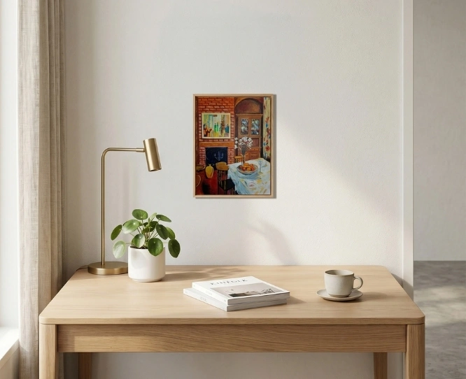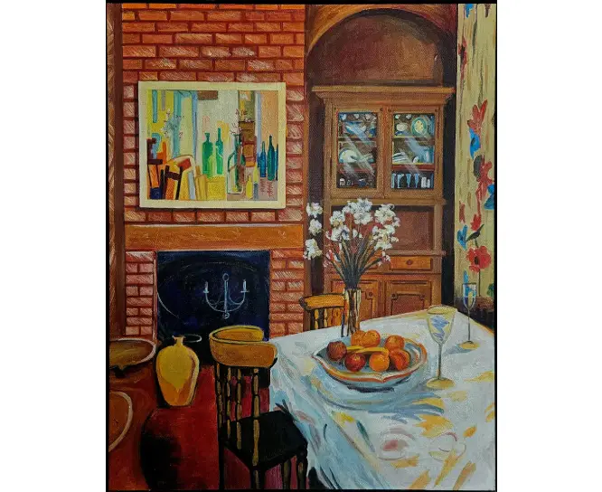 Interior-themed painting highlighting warm and inviting spaces.