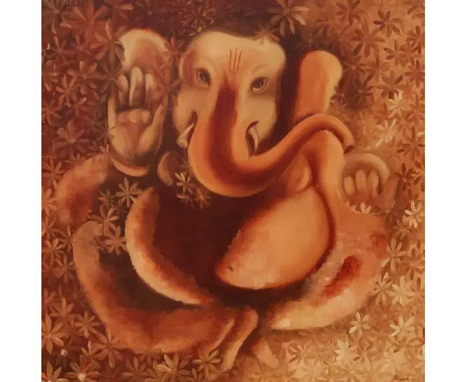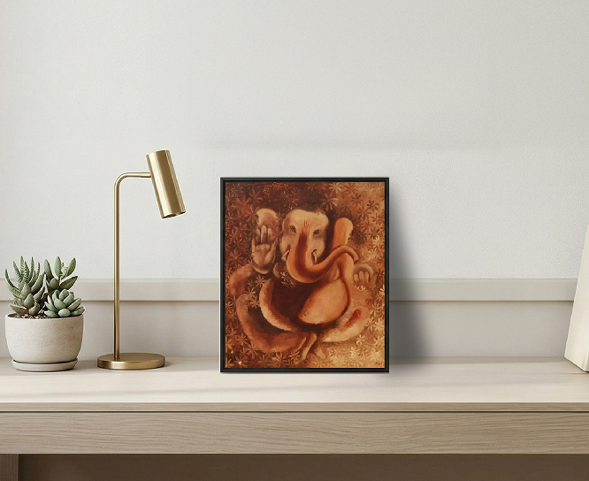 Traditional Ganesha artworks in earthy tones.