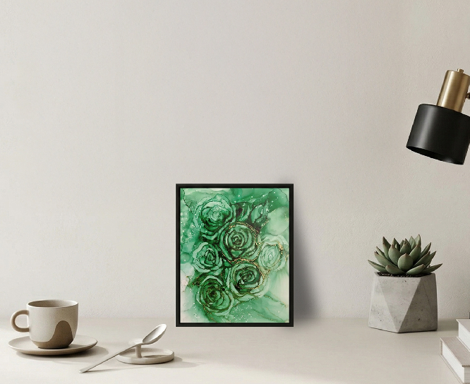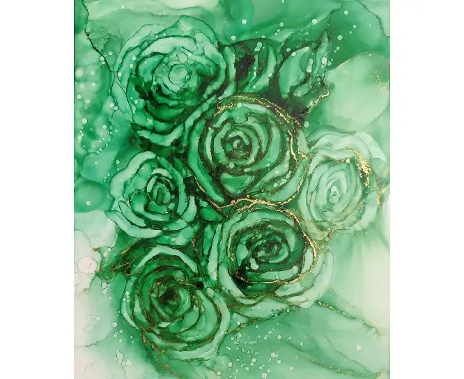 Floral artwork featuring rare green-toned roses.