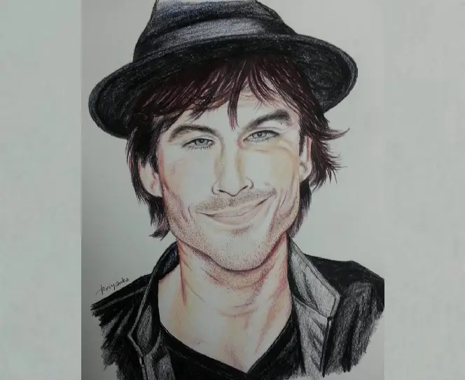 A finely crafted color pencil portrait highlighting detailed expression and realistic artistic technique.